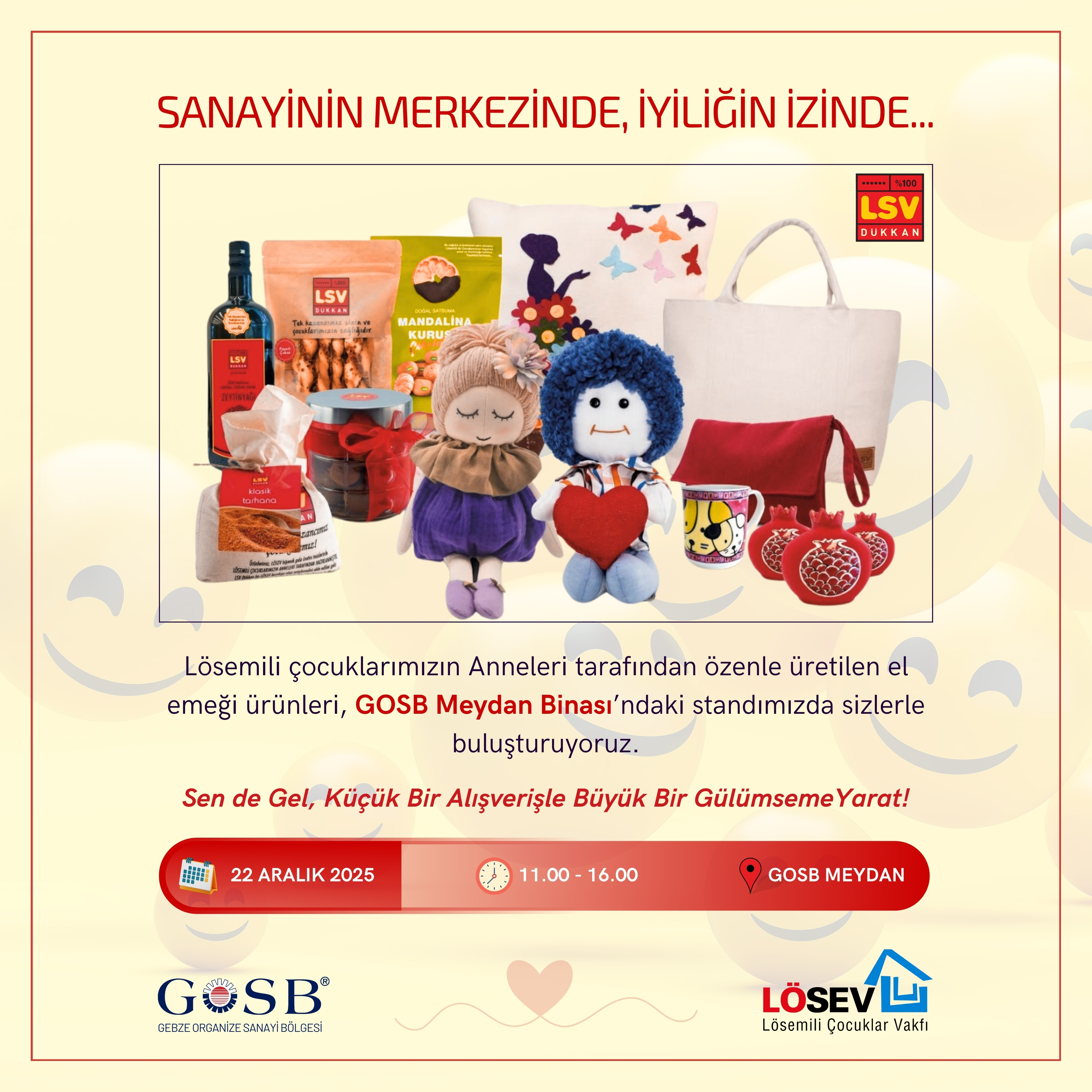 Lösemili çocuklarımızın annelerinin sevgiyle ve özenle hazırladığı el emeği ürünleri, GOSB Meydan Binası’ndaki standımızda sizlerle buluşturuyoruz. Her bir ilmekte umut, her bir üründe bir dayanışma hikayesi var.