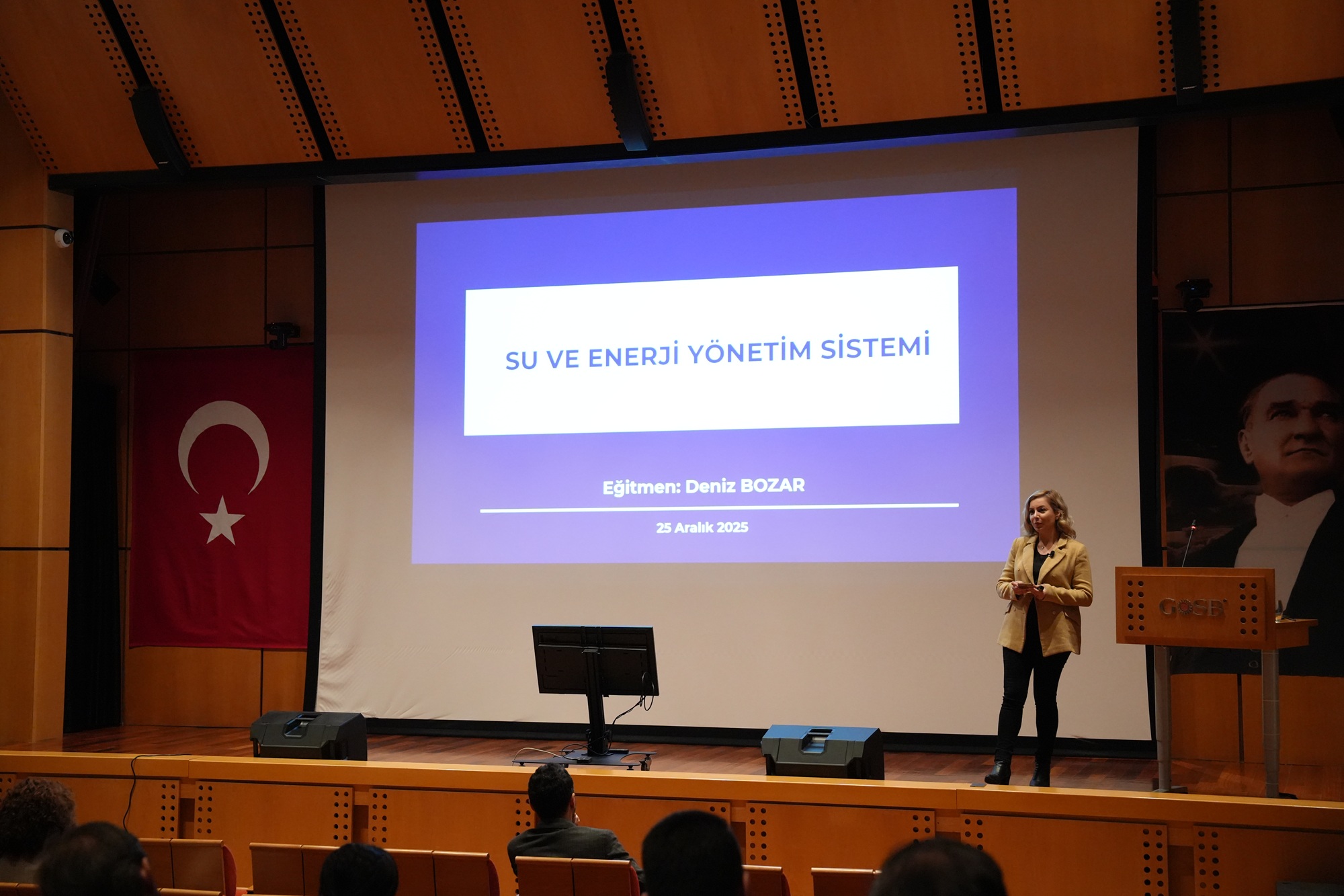 25 Aralık 2025 tarihinde GOSB Konferans Salonu'nda düzenlenen eğitim programına, bölgedeki firmalardan çok sayıda katılımcı iştirak etti. Program kapsamında sera gazı emisyonları ve karbon ayak izi azaltımı, su verimliliği ve yönetimi ile enerji verimliliği ve yenilenebilir enerji konuları ele alındı.